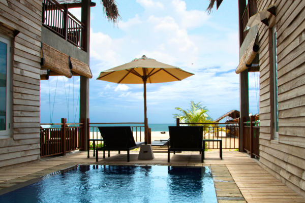 Experience unmatched luxury in our 54 m² Panoramic Suite with Sea View. This spacious private suite offers sweeping views of the ocean, best enjoyed from your own pool with a view. The suite features two twin beds and one full bed, all praised by our guests for their comfort with a rating of 9.2.